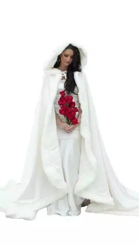 - Price Long Women White Ivory Wedding Cloaks Faux F...