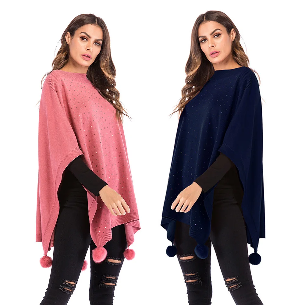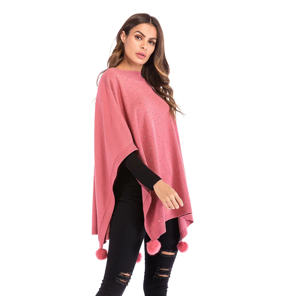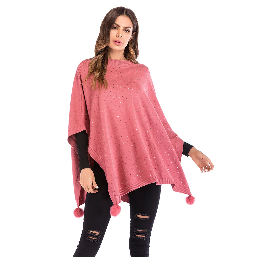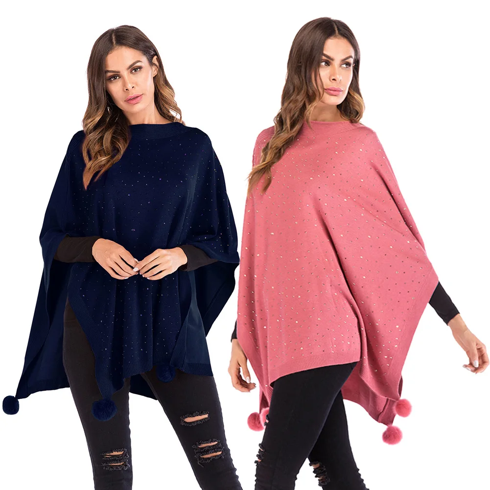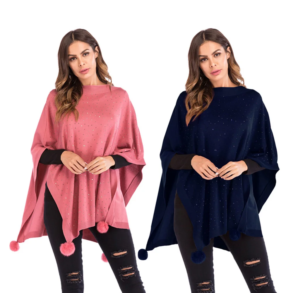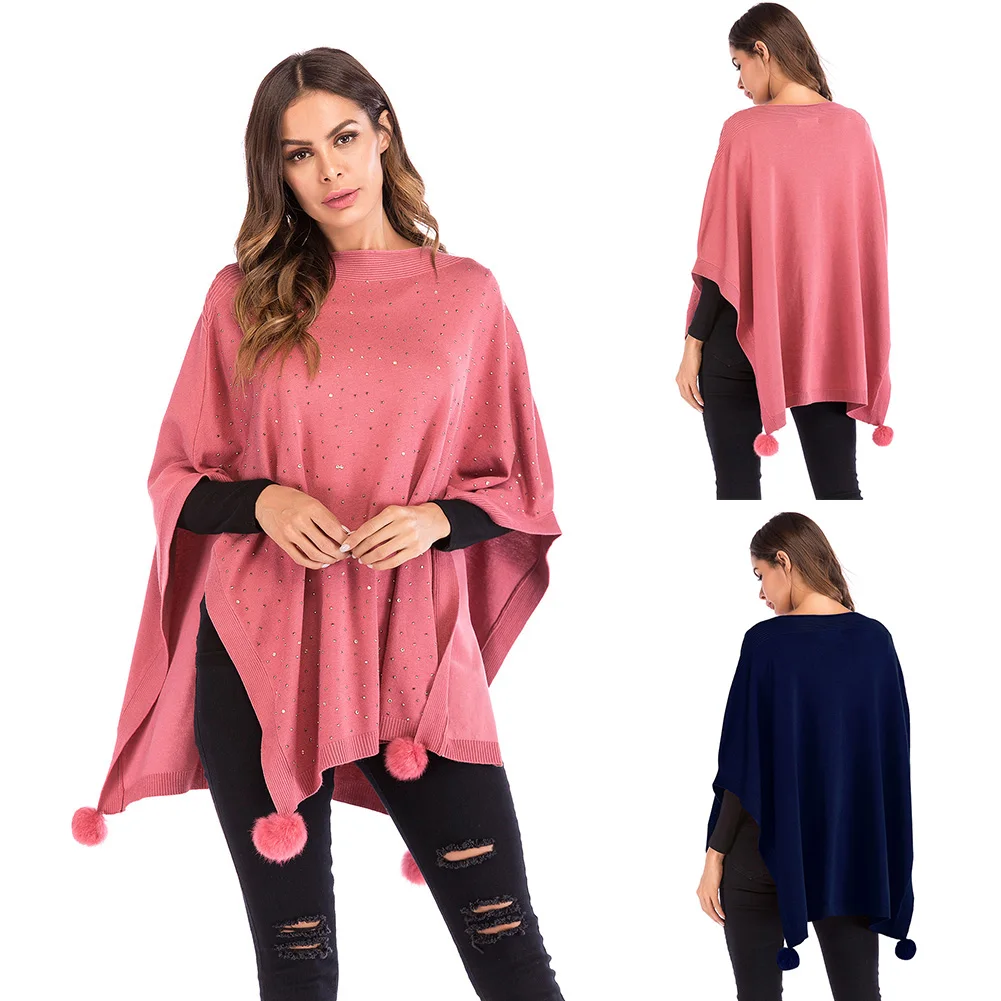 Best Product New European and American Women's Wear - Seven Split Sleeves and Woolen Cloak Shawl - Drill Knitted Bat Shirt