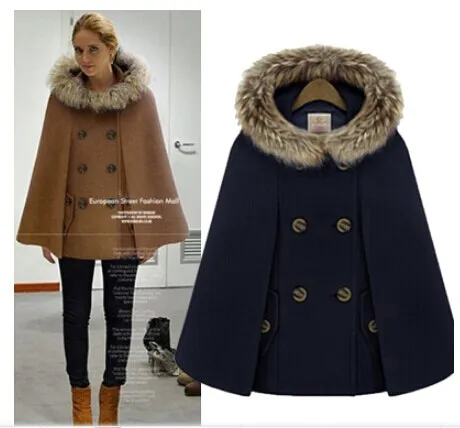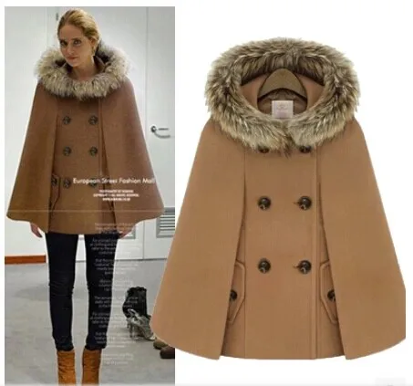 Price New Retro 2018Winter Coats For Women British Style Cap Shawl Cloak Cape Femme Women Wool Coat