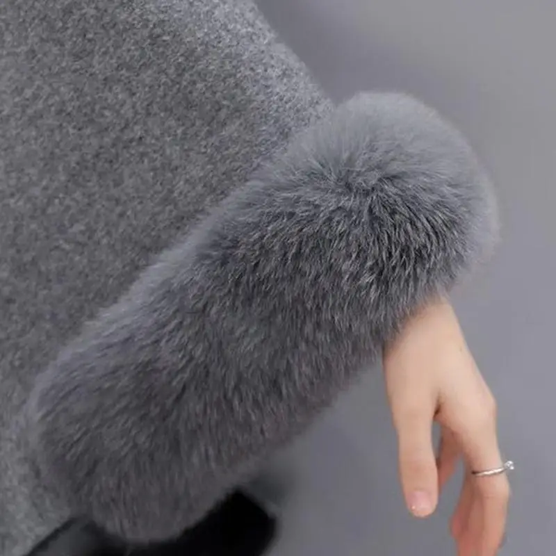 Top Women Wool Coat Ladies Winter Warm Plaid Loose Overcoat Winter Thick Knitwear Shawl Cape long sleeve Coat Casual Outerwear Cloak