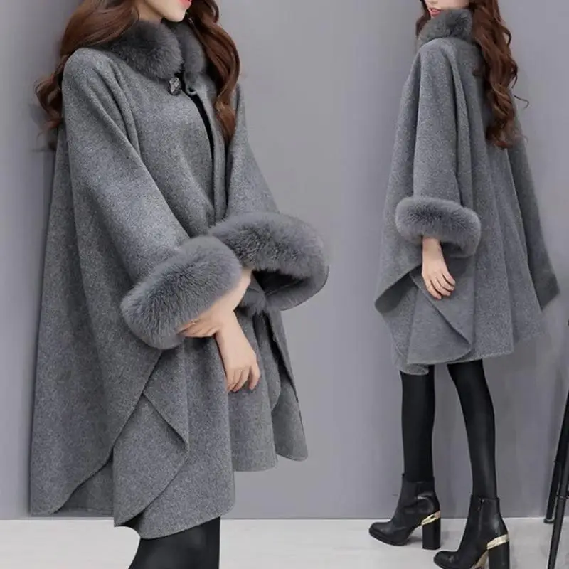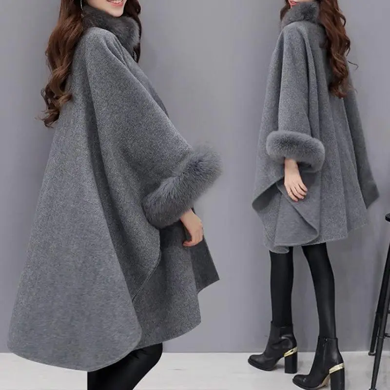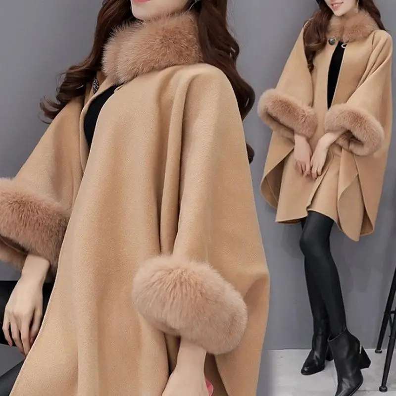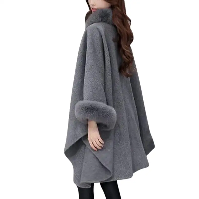 Price Women Wool Coat Ladies Winter Warm Plaid Loose Overcoat Winter Thick Knitwear Shawl Cape long sleeve Coat Casual Outerwear Cloak