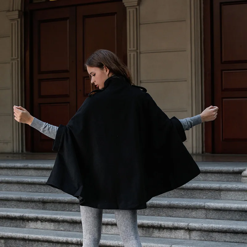 Top Z-ZOUX Women Winter Coat Batwing Sleeve Single Breasted Female Overcoat All Match Black Cloak Loose Long Shawl Plus Size Top XXL