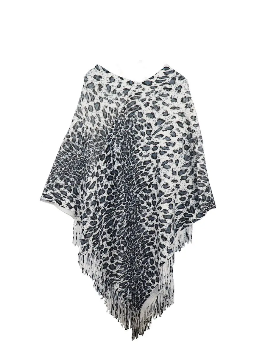 Buy Women Bat Sleeve Tops Cloak Leopard Print Tassel Casual Loose Outdoor Fashion